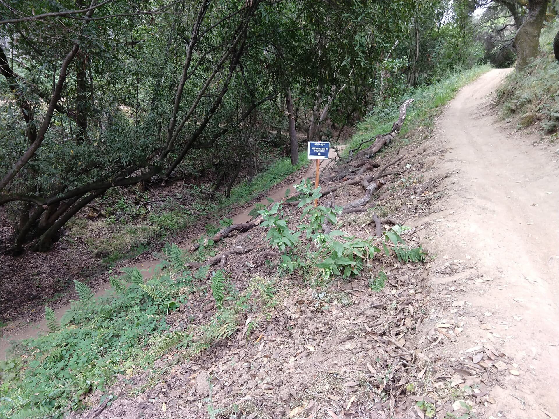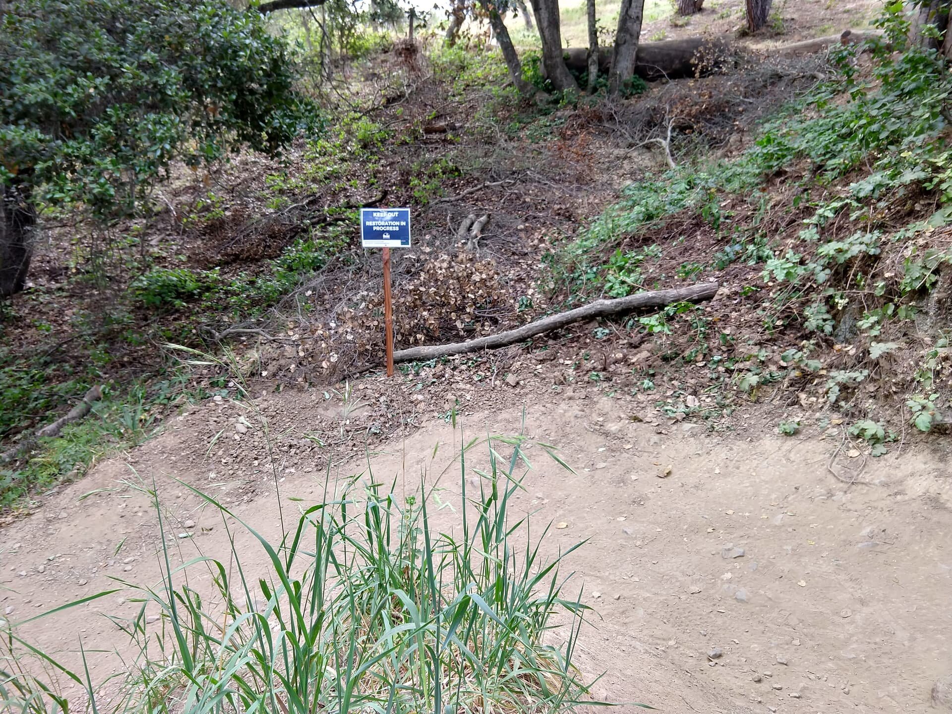 There are a number of shortcuts between trails that are contributing to erosion and are unsafe to use. The Belmont Parks and Recreation Department is working with volunteer groups such as the Waterdog Trailkeepers to close these off. These areas will be re-vegetated eventually, but it can’t be done now due to the drought, so for the time being they have been pot-holed/brushed, and signage has been placed. Please help keep our trails in great shape by staying off these shortcuts and not disturbing the temporary measures. Below are some photos of the recent work on Chaparral and John Brooks where they converge near the Somerset Drive trailhead.