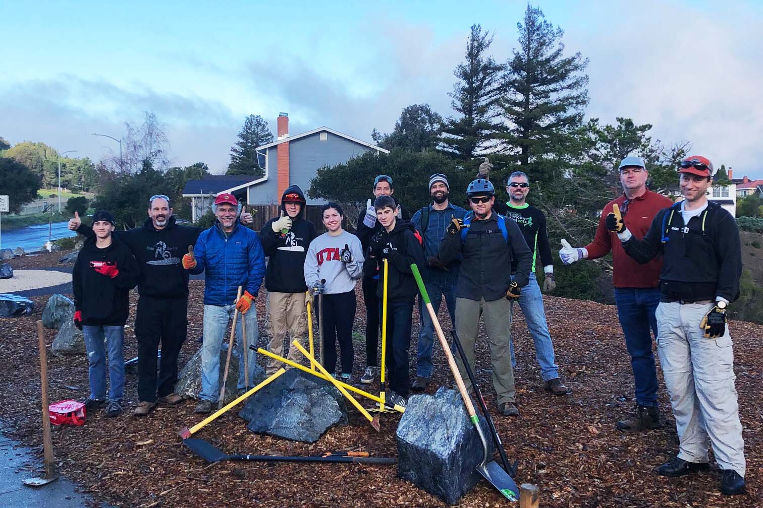 Our members also participate in the local trail maintenance organization, Waterdog Trailkeepers, which donates hundreds of hours of trail maintenance every year. We have members who were involved in the trails' original construction, and who continue to maintain the trails in the years since. Stewardship isn't just local activism, but also true effort and care for the trail system. Friends show up.